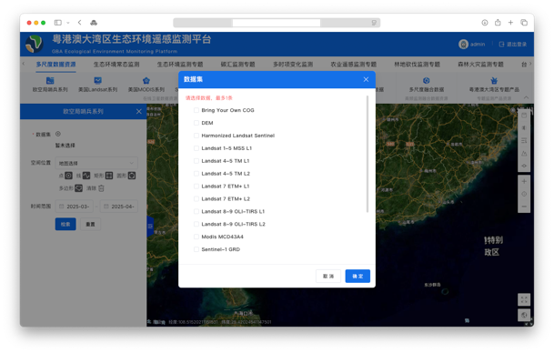 圖 1?多種遙感數(shù)據(jù)在線查詢
