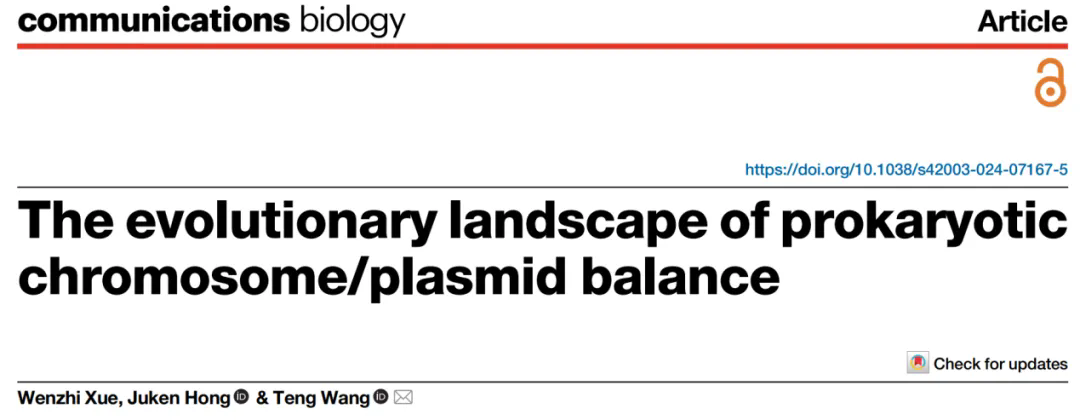 此前不久,王騰團隊在Communications Biology上發(fā)表了題為“The evolutionary landscape of prokaryotic chromosome/plasmid balance”的研究論文。該工作解析了原核生物染色體/質(zhì)粒平衡的多層次選擇機制,為質(zhì)粒的演化動力提出了全新的理論框架。