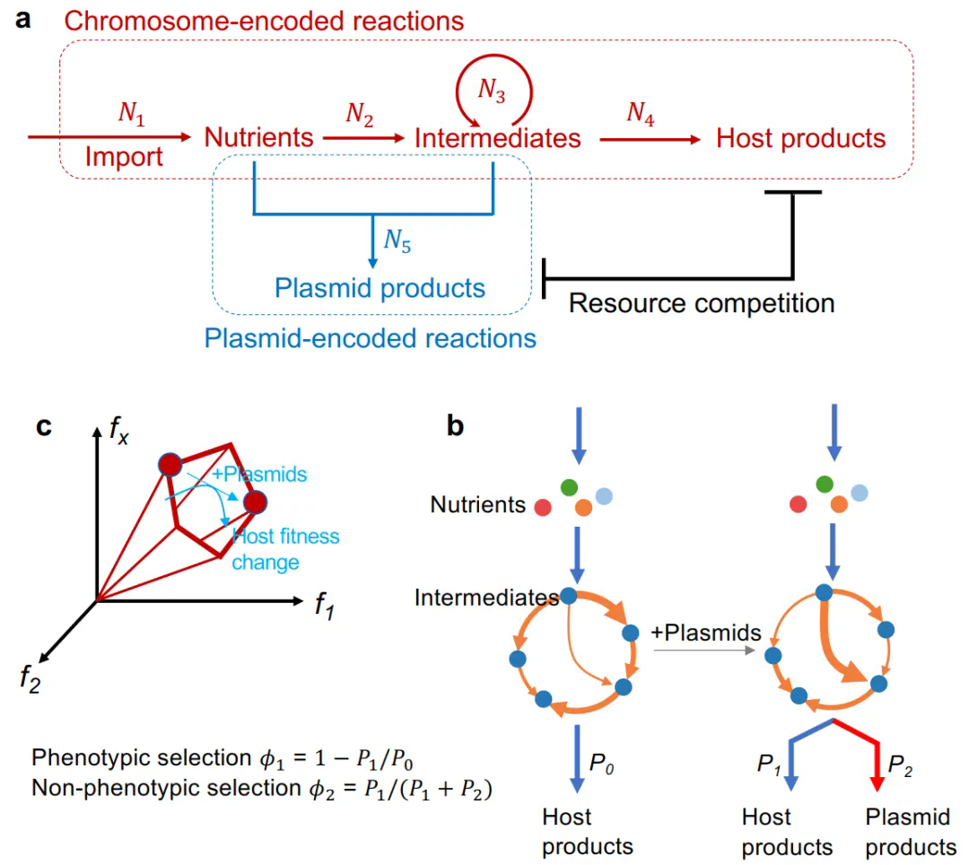 質(zhì)粒作為原核生物中廣泛存在的可移動遺傳元件,在微生物進化、抗生素抗性傳播及病原毒力擴散中扮演核心角色。依據(jù)傳統(tǒng)達爾文進化理論,質(zhì)粒的存續(xù)依賴于宿主表型選擇(如宿主生長負擔(dān)的降低),但近年研究發(fā)現(xiàn),非表型選擇(如質(zhì)粒自身復(fù)制效率、水平轉(zhuǎn)移能力)同樣顯著影響其穩(wěn)定性。例如,人類腸道中廣泛存在的pBI143質(zhì)粒雖無明確功能基因且面臨強選擇壓力,挑戰(zhàn)了傳統(tǒng)表型選擇范式。然而,現(xiàn)有研究多聚焦單一選擇壓力,對兩種力量如何共同塑造染色體/質(zhì)粒平衡缺乏系統(tǒng)性定量模型,尤其缺乏對代謝資源分配、宿主基因組規(guī)模等內(nèi)在因素的動態(tài)解析。這一理論空白限制了對質(zhì)粒多樣性的進化解釋,也阻礙了臨床耐藥基因傳播的精準(zhǔn)干預(yù)。