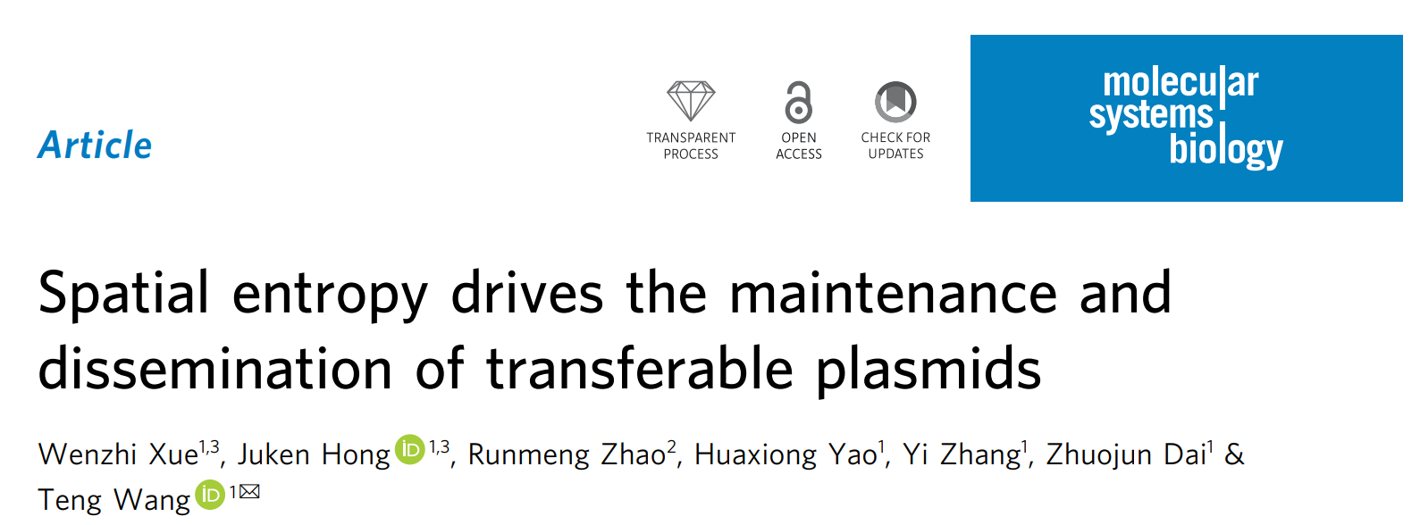 5月1日,王騰研究員課題組在Molecular Systems Biology上發(fā)表了題為“Spatial entropy drives the maintenance and dissemination of transferable plasmids”的研究論文。該工作首次將物理學(xué)中“熵”的概念引入微生物生態(tài)學(xué),揭示了空間結(jié)構(gòu)驅(qū)動基因水平轉(zhuǎn)移的普適機(jī)制。