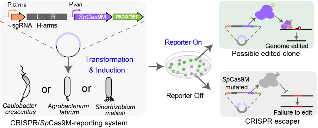 Nucleic Acids Research|一種用于新月柄桿菌高效快速基因組編輯的CRISPR/SpCas9M報(bào)告系統(tǒng)