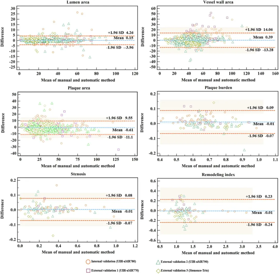 圖3:所提出方法的量化評(píng)估結(jié)果Bland–Altman圖