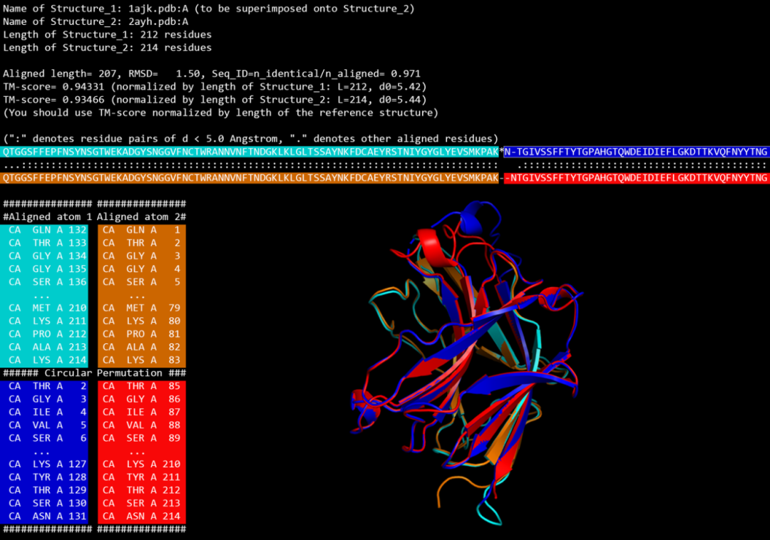 圖5. US-align進(jìn)行循環(huán)排列結(jié)構(gòu)比對(duì)的實(shí)例。