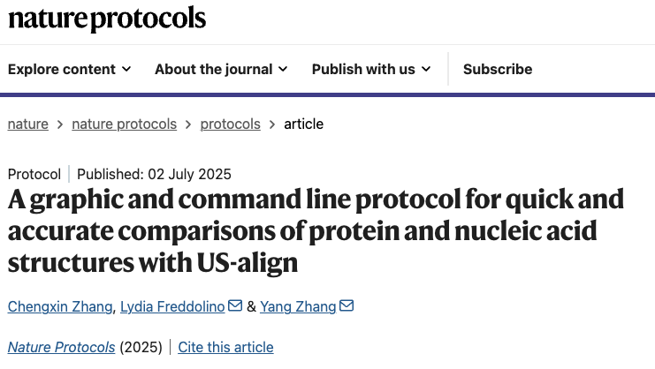 Nature Protocols | 通用蛋白與核酸結(jié)構(gòu)比對(duì)新算法US-align