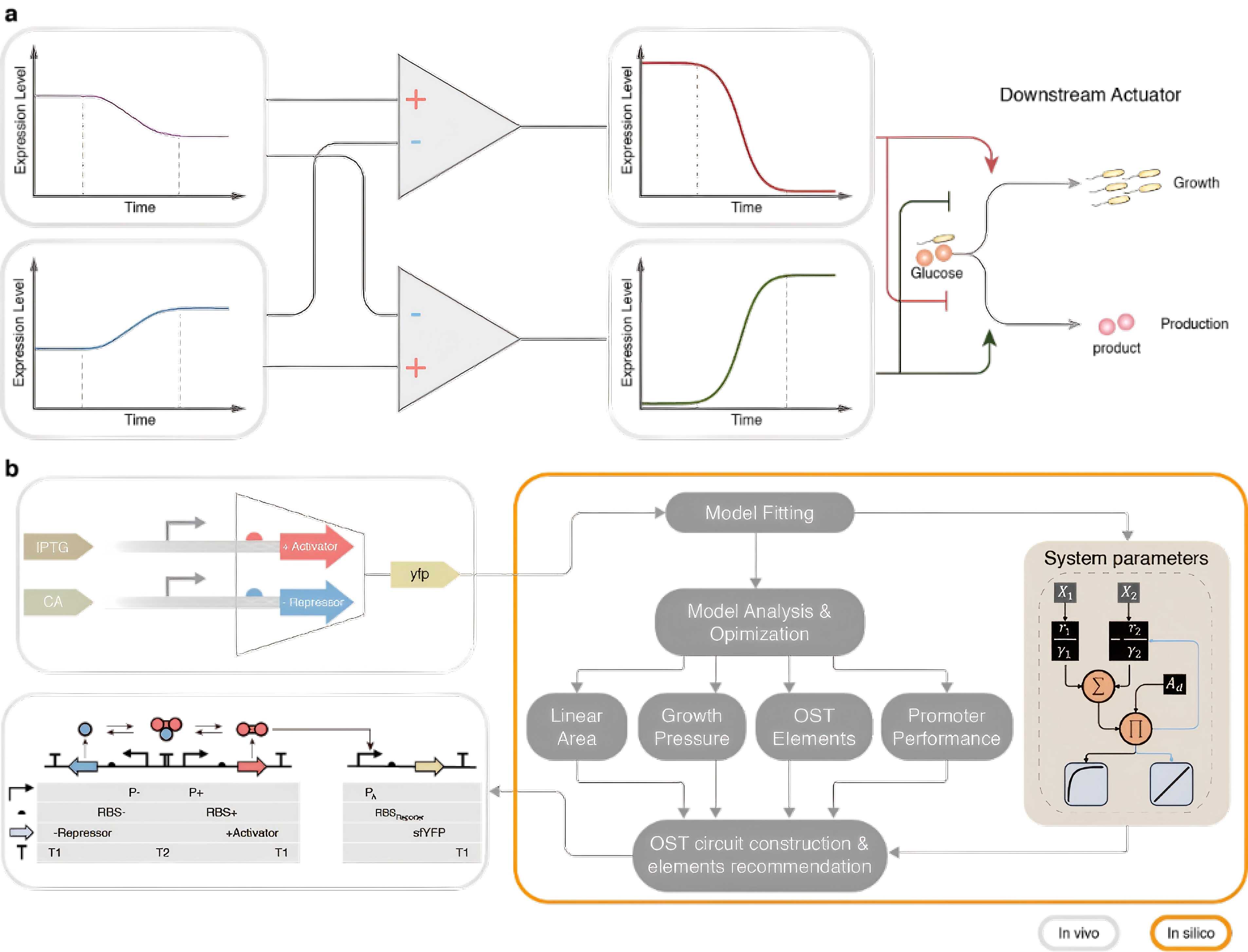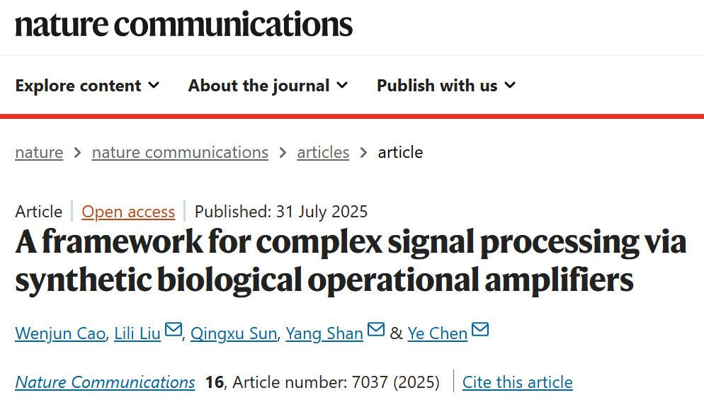 如何精確指揮細胞執(zhí)行特定任務,是合成生物學發(fā)展的關鍵挑戰(zhàn)。近日,中國科學院深圳先進技術(shù)研究院(簡稱“深圳先進院”)陳業(yè)團隊聯(lián)合湖南省農(nóng)業(yè)科學院單楊院士團隊在基因線路設計領域取得重要突破,他們建立了一套全新的生物信號處理框架,能夠精準“解碼”細胞感知的復雜信號。該研究成果以“A Framework for Complex Signal Processing via Synthetic Biological Operational Amplifiers”為題,發(fā)表于國際學術(shù)期刊《自然·通訊》(Nature Communications)。該研究的核心貢獻是建立了一個可拓展的、解決復雜信號處理問題的通用基因線路解決方案,并成功設計出生物學“運算放大器”(OA)作為實現(xiàn)該框架的物理載體,為解決多維信號調(diào)控難題提供了創(chuàng)新的工程化思路。