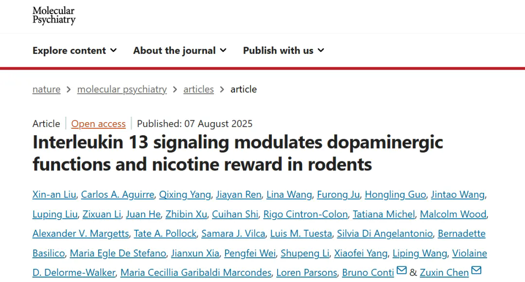 Mol Psychiatry丨揭示神經(jīng)免疫信號(hào)直接調(diào)控多巴胺神經(jīng)元及尼古丁成癮機(jī)制