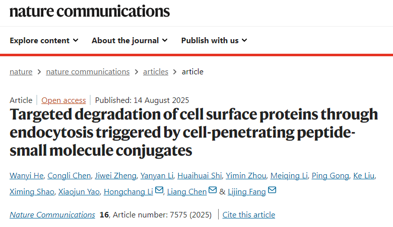 Nature Communications | CPPTACs介導(dǎo)的細(xì)胞膜蛋白靶向降解