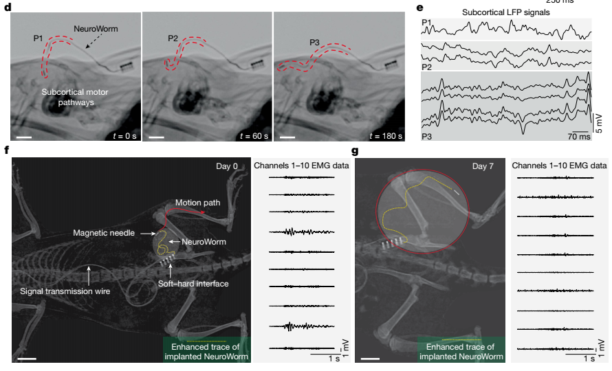 NeuroWorm的誕生不僅為腦機接口開辟了新路徑,它的應用還遠不止于大腦。研究團隊還首次實現(xiàn)了電極在肌肉內(nèi)的長期植入與穩(wěn)定工作。