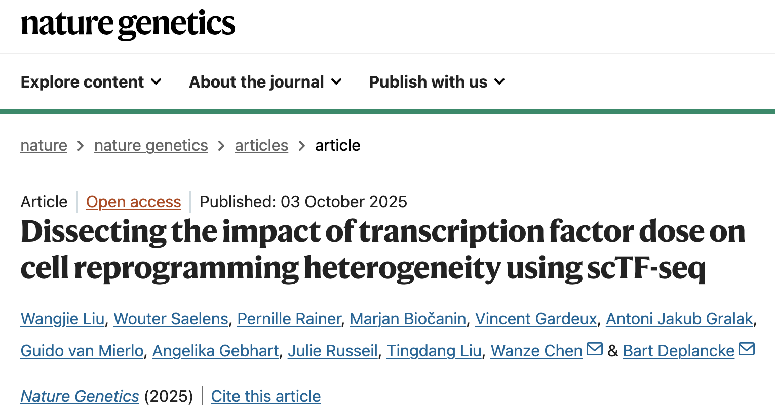 文章上線截圖,原文鏈接:https://www.nature.com/articles/s41588-025-02343-7