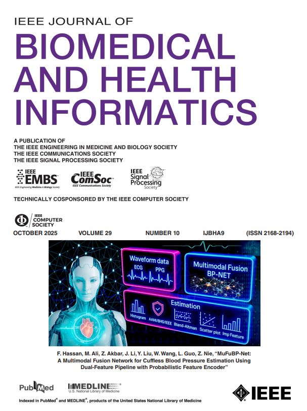 2025年10月,中國科學院深圳先進技術研究院(簡稱“深圳先進院”)聶澤東研究員團隊在 IEEE Journal of Biomedical and Health Informatics(JBHI)發(fā)表了基于ECG與PPG的動態(tài)血壓監(jiān)測研究 “MuFuBP-Net: A Multimodal Fusion Network for Cuffless Blood Pressure Estimation Using Dual-Feature Pipeline With Probabilistic Feature Encoder”(Highlights文章),并以配圖形式登載于 JBHI October 2025當期封面。