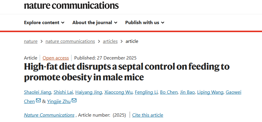 Nature Communications丨發(fā)現(xiàn)高脂飲食導(dǎo)致外側(cè)隔核功能失調(diào)進(jìn)而加劇肥胖的新機(jī)制