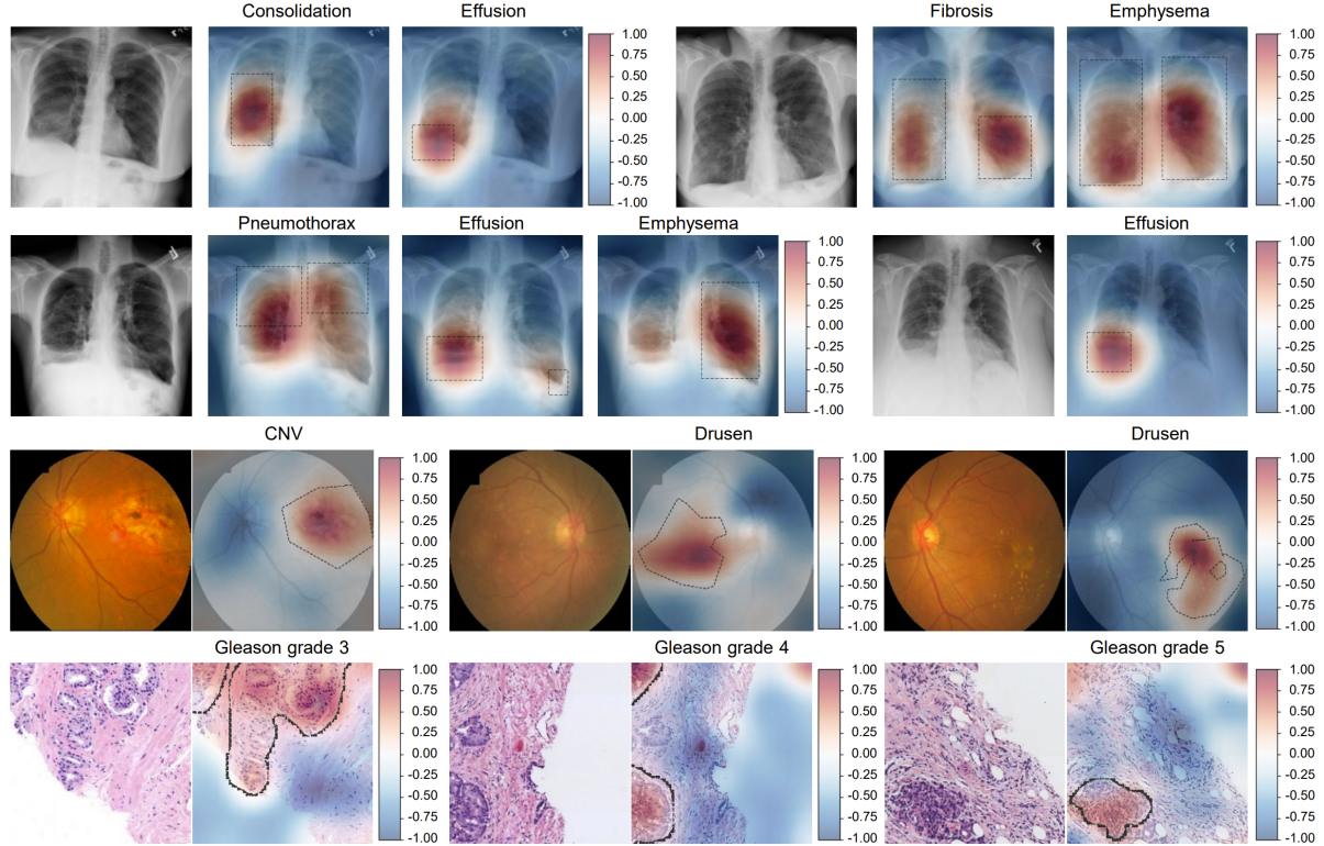 研究團(tuán)隊(duì)在胸部X光、眼底影像和組織病理圖像三種典型醫(yī)學(xué)影像模態(tài)上對(duì)AFLoc進(jìn)行了系統(tǒng)驗(yàn)證,結(jié)果顯示模型均表現(xiàn)出優(yōu)異性能。