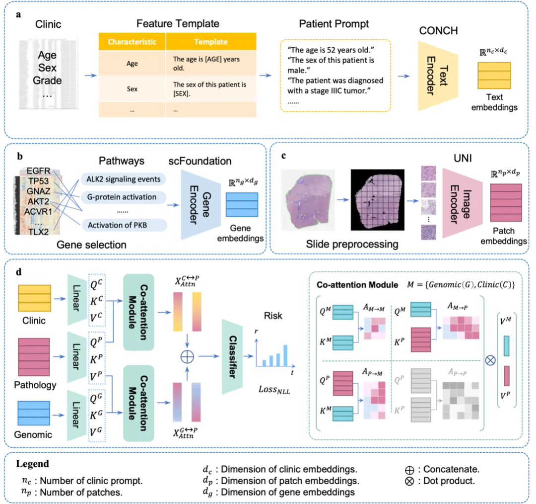 癌癥患者的預(yù)后情況,是制定個(gè)性化治療方案的核心依據(jù),但腫瘤具有高度異質(zhì)性,給精準(zhǔn)評(píng)估預(yù)后帶來了巨大挑戰(zhàn)。目前,多模態(tài)研究多集中在病理影像與基因組數(shù)據(jù),而能反映患者整體健康狀況的臨床信息,因存在離散、稀疏、維度低等特性,尚未被充分挖掘利用,這也導(dǎo)致傳統(tǒng)方法難以精準(zhǔn)評(píng)估預(yù)后風(fēng)險(xiǎn)。