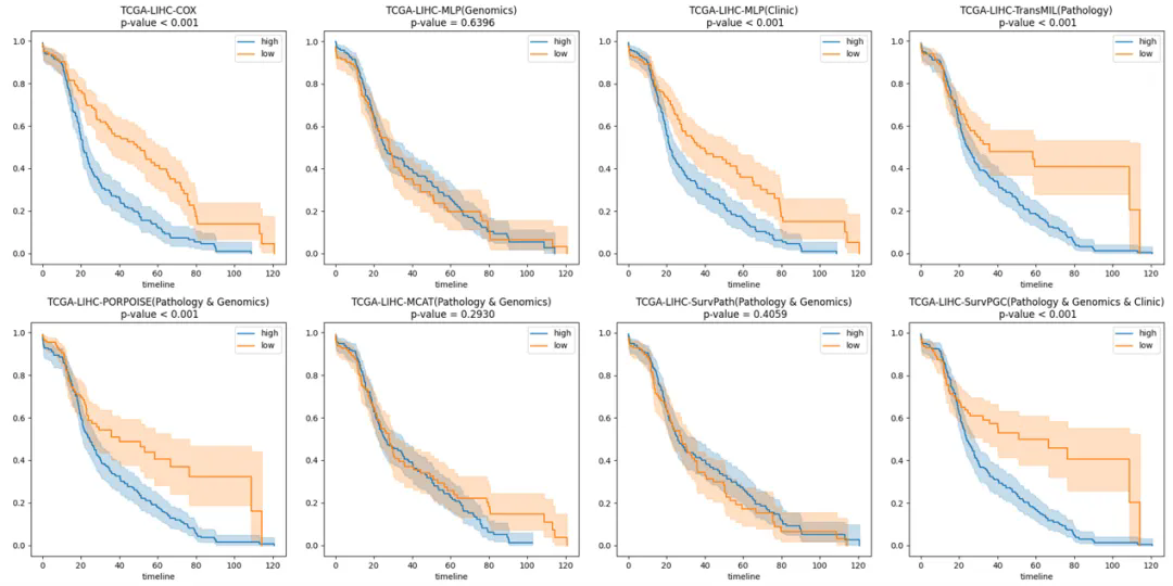 圖3:各模型在TCGA-LIHC數(shù)據(jù)集上的KM曲線