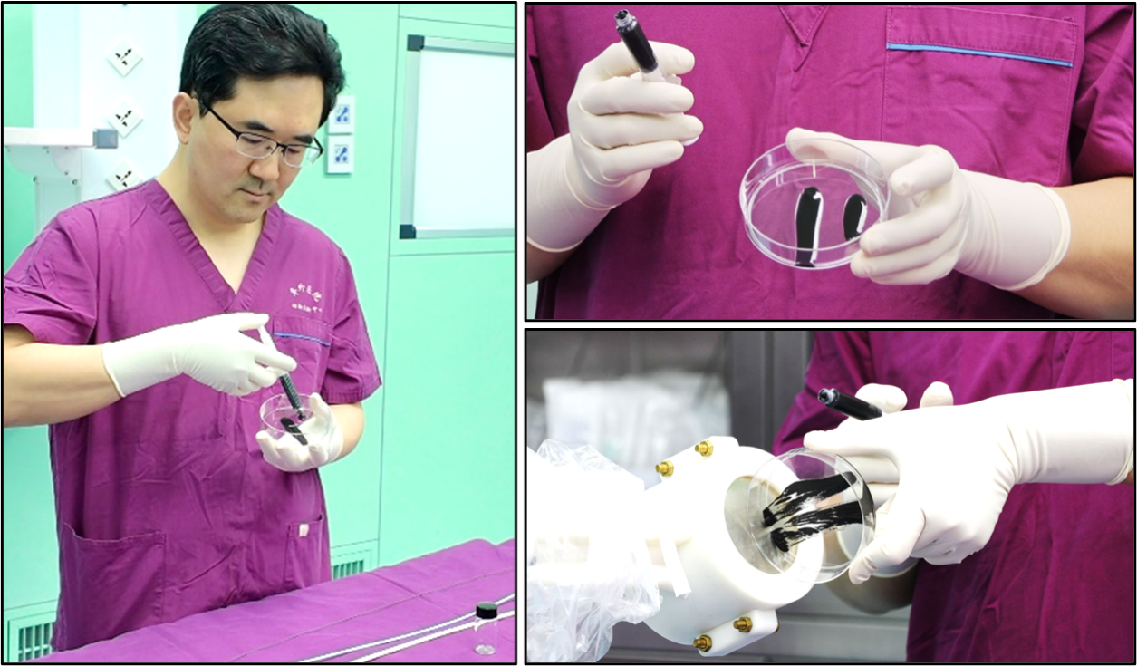 2023年11月的一天,徐天添團(tuán)隊(duì)正在圍繞原位固化的磁流體機(jī)器人展開實(shí)驗(yàn),恰逢潘湘斌團(tuán)隊(duì)來訪交流。徐天添團(tuán)隊(duì)在交流中了解到了左心耳封堵的臨床難題。