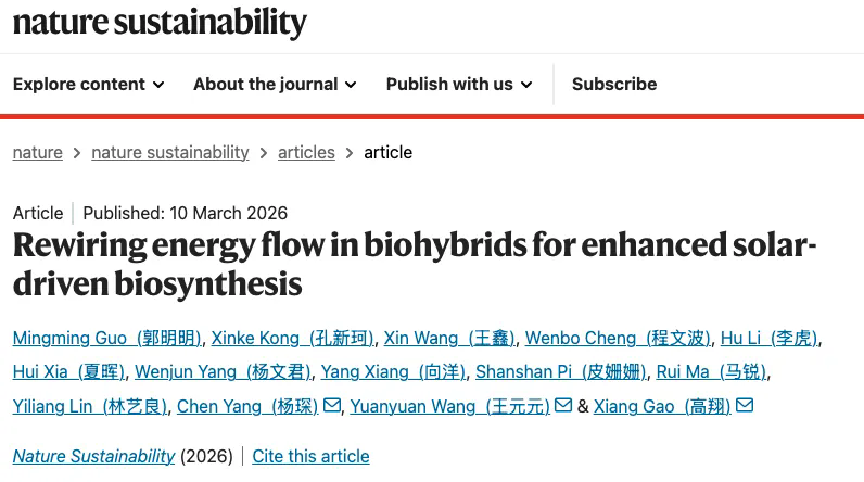 Nature Sustainability | 深圳先進(jìn)院團(tuán)隊(duì)構(gòu)建人工光合工程細(xì)胞 實(shí)現(xiàn)太陽能驅(qū)動(dòng)生物制造新突破