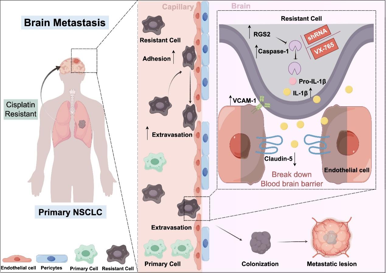 肺癌是全球最常見和最致命的惡性腫瘤之一,其腦轉(zhuǎn)移發(fā)病率及致死率極高。肺癌為什么容易發(fā)生腦轉(zhuǎn)移?這一難題,終于有了突破性答案!3月14日,來自中國科學(xué)院深圳先進技術(shù)研究院的余敏副研究員團隊、吉林大學(xué)附屬第一醫(yī)院的暢君雷研究員團隊、中山大學(xué)腫瘤防治中心牟永告主任團隊、廣西醫(yī)科大學(xué)第一附屬醫(yī)院梁倫副教授團隊及合作在神經(jīng)腫瘤領(lǐng)域的權(quán)威期刊Neuro-Oncology(近五年平均IF:16)在線發(fā)表了最新的研究成果,題目是“RGS2 Promotes Brain Metastasis of Cisplatin-resistant Non-small Cell Lung Cancer through Caspase-1/IL-1beta Signaling Pathway”的研究論文。通過結(jié)合肺癌腦轉(zhuǎn)移臨床隊列、細(xì)胞實驗及動物模型,揭示了化療耐藥背景下肺癌腦轉(zhuǎn)移增強的核心分子機制,為臨床預(yù)防和干預(yù)肺癌腦轉(zhuǎn)移提供了全新思路和潛在靶點。