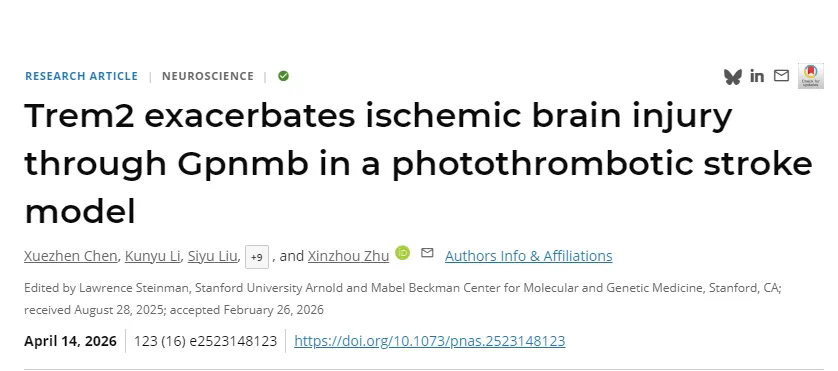 PNAS丨深圳先進(jìn)院聯(lián)合揭示Trem2調(diào)控缺血性腦卒中后神經(jīng)炎癥的新機(jī)制