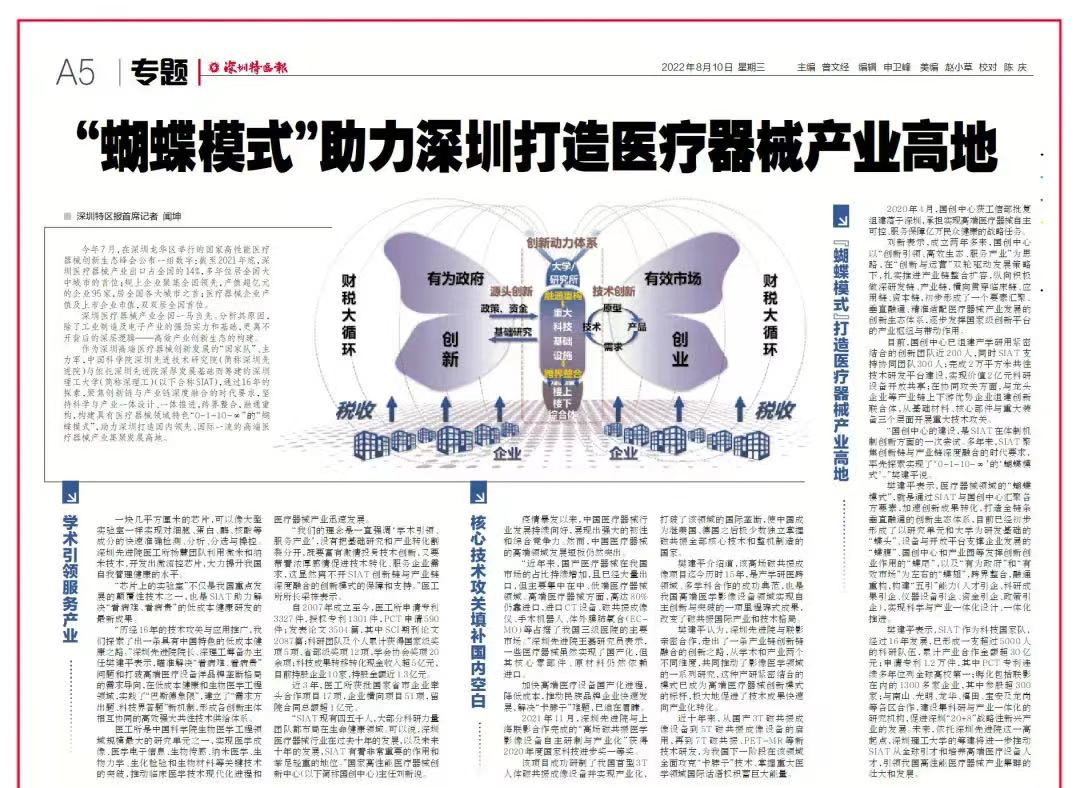8月10日,《深圳特區(qū)報》報道了深圳先進院高效創(chuàng)業(yè)創(chuàng)新生態(tài)的模式構(gòu)建——“蝴蝶模式”,該模式為助力深圳打造高新產(chǎn)業(yè)集聚發(fā)展高地提供了有效經(jīng)驗。
