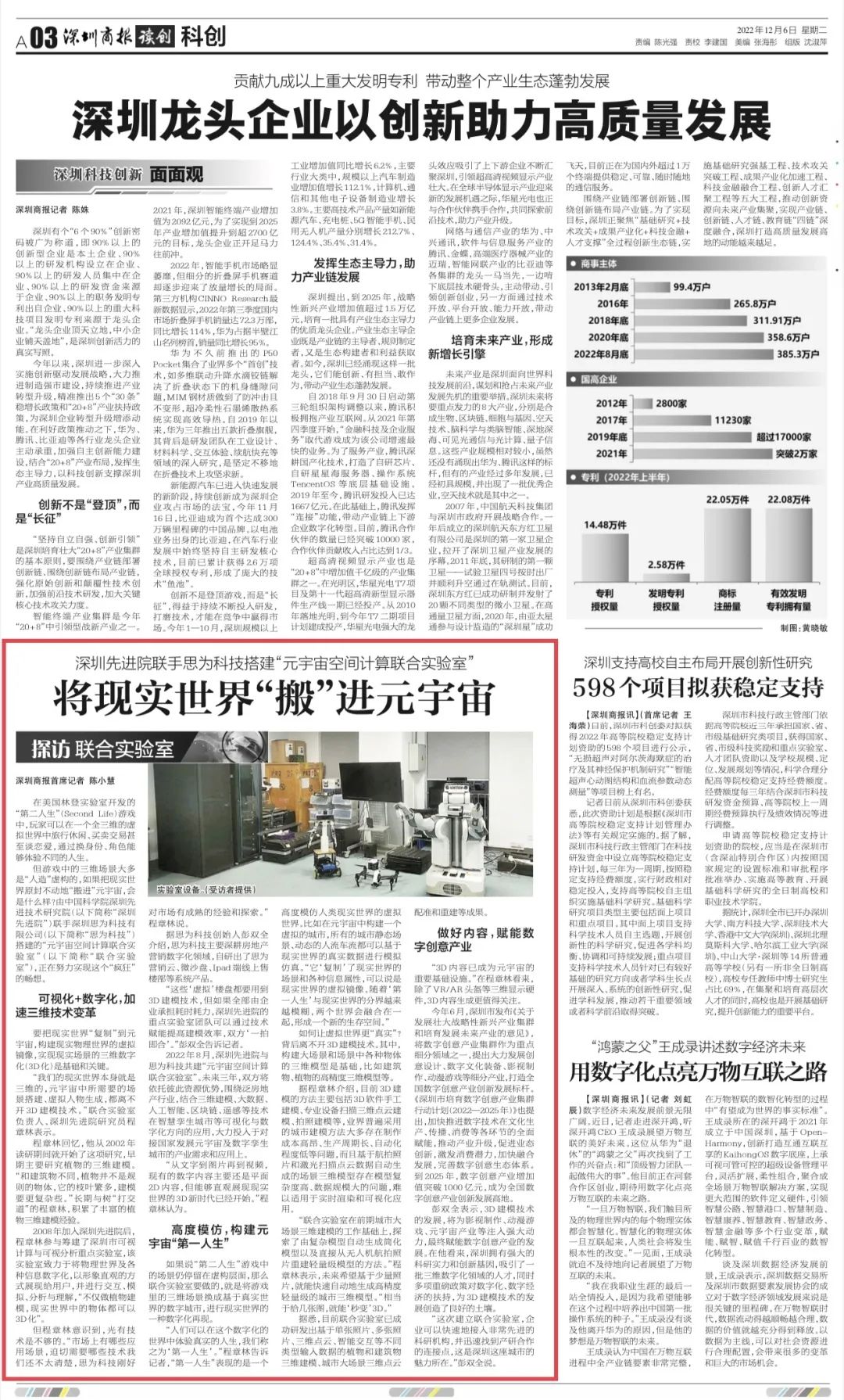近日,《深圳商報(bào)》以《將現(xiàn)實(shí)“搬”進(jìn)元宇宙》為題,對(duì)我院【元宇宙空間計(jì)算聯(lián)合實(shí)驗(yàn)室】做了重點(diǎn)報(bào)道。