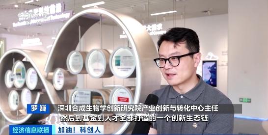 深圳合成生物學(xué)創(chuàng)新研究院產(chǎn)業(yè)創(chuàng)新與轉(zhuǎn)化中心主任 羅巍:把科研到產(chǎn)業(yè)、到基金、到人才全部打造的一個創(chuàng)新生態(tài)鏈。目前在創(chuàng)新中心,有將近50家企業(yè),這50家企業(yè)的融資額已經(jīng)將近30億元,我們的產(chǎn)業(yè)園總估值額已經(jīng)超過300億元。
