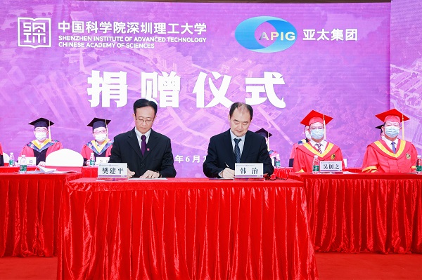 6月24日,中國(guó)科學(xué)院深圳理工大學(xué)(籌,簡(jiǎn)稱中科院深理工)捐贈(zèng)儀式在中國(guó)科學(xué)院深圳先進(jìn)技術(shù)研究院舉行。深圳亞太控股集團(tuán)有限公司向中科院深理工捐贈(zèng)人民幣500萬(wàn)元,用以支持中科院深理工人才培養(yǎng)、科學(xué)研究、師資建設(shè)等。