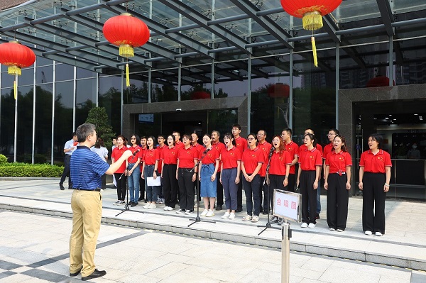 在SIAT教職工合唱團(tuán)的帶領(lǐng)下,在場職工學(xué)生共同唱響《愛我中華》、《歌唱祖國》,用嘹亮的歌聲為國慶獻(xiàn)禮。