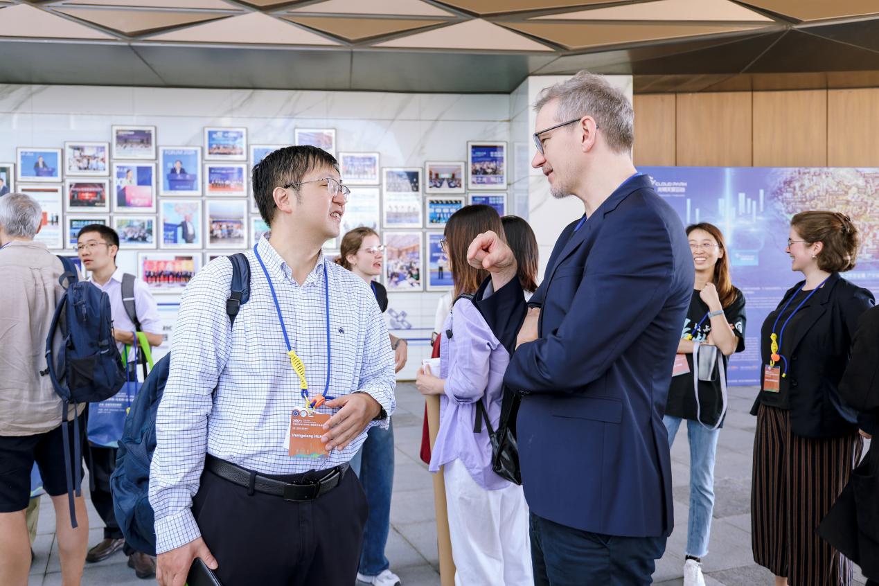 16日上午,暑期學(xué)校先行舉辦了中國科學(xué)院青年國際學(xué)術(shù)沙龍,深圳先進(jìn)院院長劉陳立系統(tǒng)介紹了深圳先進(jìn)院、合成生物學(xué)研究所以及深圳市合成生物研究重大科技基礎(chǔ)設(shè)施的整體布局;德方組委會代表、馬普陸地微生物所執(zhí)行所長Helge Bode概述了該所在合成生物學(xué)領(lǐng)域的科研戰(zhàn)略與發(fā)展重點(diǎn),有效促進(jìn)了雙方研究體系的對齊與互鑒。與會者還實(shí)地調(diào)研了合成生物大設(shè)施等高端實(shí)驗(yàn)平臺,進(jìn)一步探討了定量合成生物學(xué)研究成果向生物制造轉(zhuǎn)化的可行路徑,為拓展中德學(xué)科合作網(wǎng)絡(luò)、共建開放創(chuàng)新生態(tài)奠定了堅(jiān)實(shí)基礎(chǔ)。隨后,33位中德青年學(xué)者在破冰環(huán)節(jié)中圍繞個(gè)人學(xué)術(shù)經(jīng)歷與研究專長展開熱烈交流,現(xiàn)場互動頻繁,氣氛活躍。