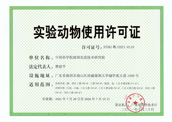 7月20日,廣東省科學技術廳正式發(fā)布準予行政許可決定書并向先進院頒發(fā)實驗動物使用許可證。