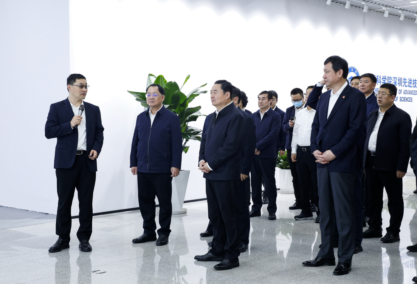 郝鵬(前排左三)一行參觀深圳先進院展廳
