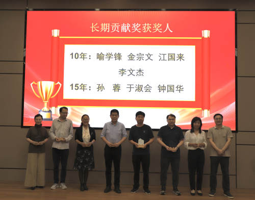 交流過(guò)后,會(huì)議進(jìn)入材料所所長(zhǎng)創(chuàng)新獎(jiǎng)的頒獎(jiǎng)環(huán)節(jié),對(duì)2023年度優(yōu)秀的員工和學(xué)生予以表彰,頒發(fā)了包括“重大項(xiàng)目獎(jiǎng)”、“優(yōu)秀論文獎(jiǎng)”、“專利及產(chǎn)業(yè)合作獎(jiǎng)”“特殊貢獻(xiàn)獎(jiǎng)”“長(zhǎng)期貢獻(xiàn)獎(jiǎng)”等十四個(gè)獎(jiǎng)項(xiàng),共計(jì)56人獲獎(jiǎng)。先進(jìn)電子材料中心研究員劉睿恒作為材料所科研骨干代表發(fā)表了獲獎(jiǎng)感言,并表示將在未來(lái)為整建制科研貢獻(xiàn)力量。