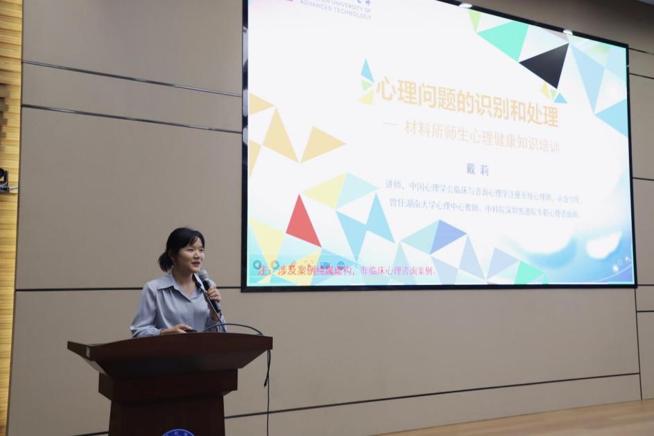 深圳理工大學(xué)心理咨詢師戴莉老師作以《心理問題的識(shí)別與處理》為題進(jìn)行了師生心理安全培訓(xùn)。戴莉戴老師從“心理健康灰色理論”引入,提出心理問題是正常人的心理煩惱,分享如何正確看待心理健康問題,最后通過常見的不同類型心理疾病案例分析病因及過程,提出如何進(jìn)行有效的心理疏導(dǎo)和如何獲得心理支持資源來對(duì)癥處理及改善心理狀態(tài)。