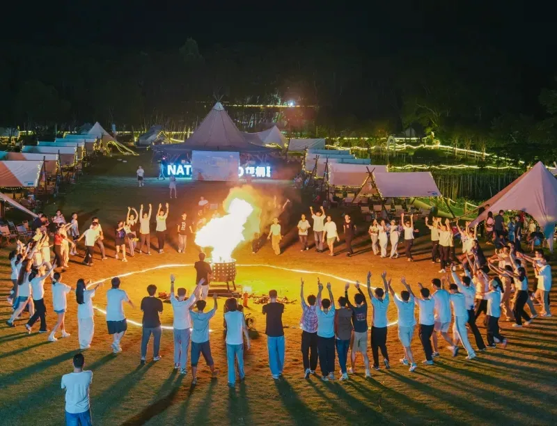 夜幕降臨,同學(xué)們分組圍坐在天幕里,自己動手享用美味的火鍋和燒烤大餐,集體勞動不僅加深了彼此間的情誼,也讓大家體會到了團隊合作帶來的樂趣。