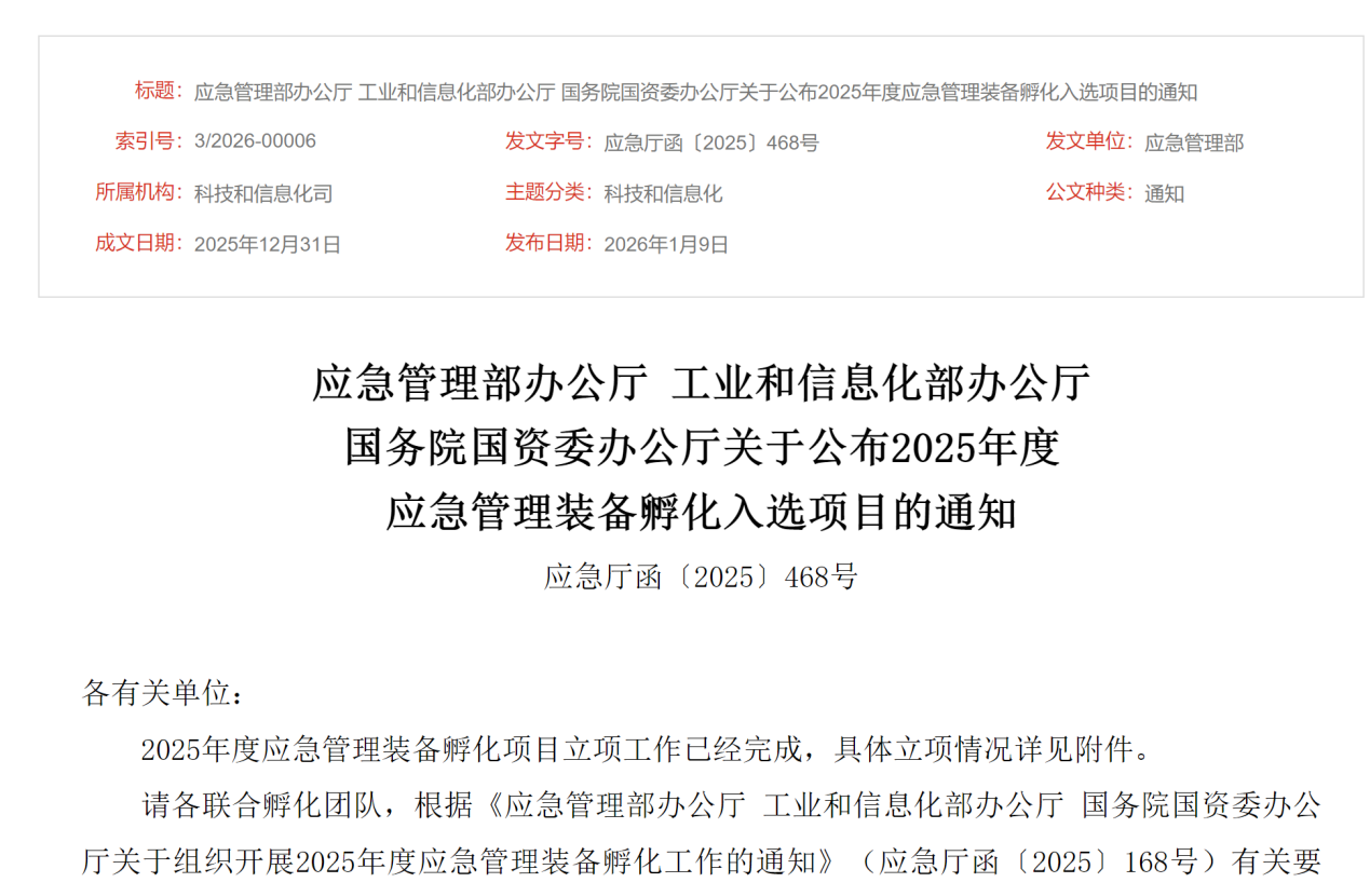 近日,2025年度應(yīng)急管理裝備孵化入選項目名單正式公布,全國共有120家認(rèn)領(lǐng)單位入選。