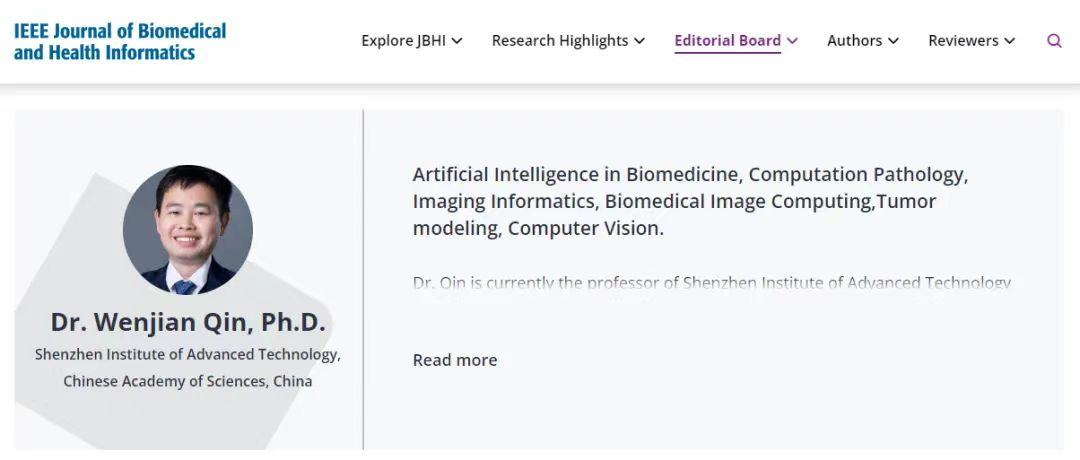 秦文健研究員受邀擔(dān)任IEEE Journal of Biomedical and Health Informatics (J-BHI)副編委