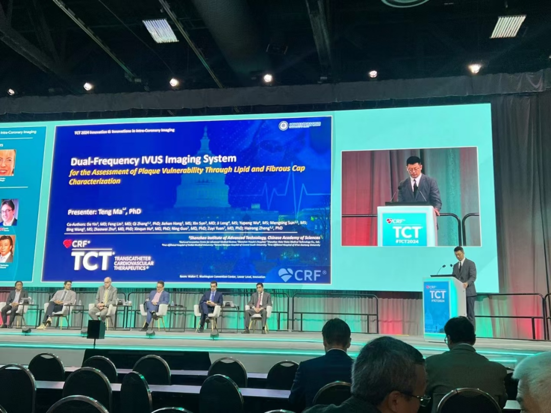 馬騰團(tuán)隊(duì)的相關(guān)臨床研究成果受邀在美國經(jīng)導(dǎo)管心血管治療學(xué)會議(TCT 2024)上作專題報(bào)告,獲得了全球?qū)<业膹V泛關(guān)注。在第26屆中國國際高新技術(shù)成果交易會上,馬騰團(tuán)隊(duì)帶來了新一代超高頻雙頻血管內(nèi)超聲(IVUS)成像診斷儀器的最新臨床研究成果。