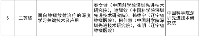 醫(yī)工所秦文健研究員等的研究成果“面向腫瘤放射治療的深度學習關(guān)鍵技術(shù)及應用”獲得2024年度吳文俊人工智能技術(shù)發(fā)明獎二等獎,該項研究成果主要研究面向腫瘤放射治療的人工智能關(guān)鍵技術(shù),圍繞腫瘤靶區(qū)自動勾畫、靶區(qū)放療劑量計算、腫瘤實時定位跟蹤三大方面,在腫瘤放療圖像計算建模與分析方面做出了重要的科學及產(chǎn)業(yè)貢獻,對人工智能技術(shù)在放射治療及醫(yī)學圖像領(lǐng)域的研究起到引領(lǐng)和推動作用。
