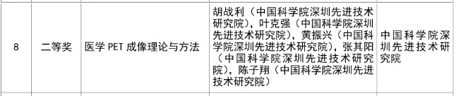 醫(yī)工所胡戰(zhàn)利研究員等的研究成果“醫(yī)學PET 成像理論與方法”獲得2024年度吳文俊人工智能自然科學獎二等獎,該項研究成果為國內(nèi)外首次提出并系統(tǒng)闡明了PET成像領(lǐng)域中的關(guān)鍵科學理論和創(chuàng)新方法,具有顯著的原創(chuàng)性和科學價值。該項目不僅在科學理論、研究方法和技術(shù)手段上有突破性進展,還為醫(yī)學影像學科的發(fā)展奠定了重要基礎(chǔ),推動了相關(guān)學科的快速發(fā)展。